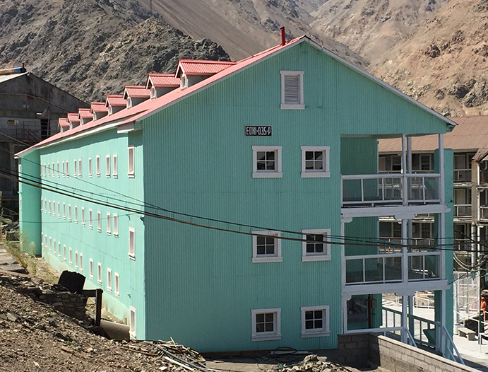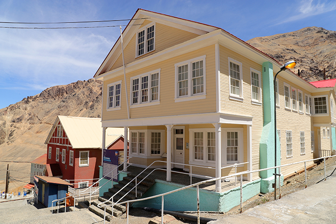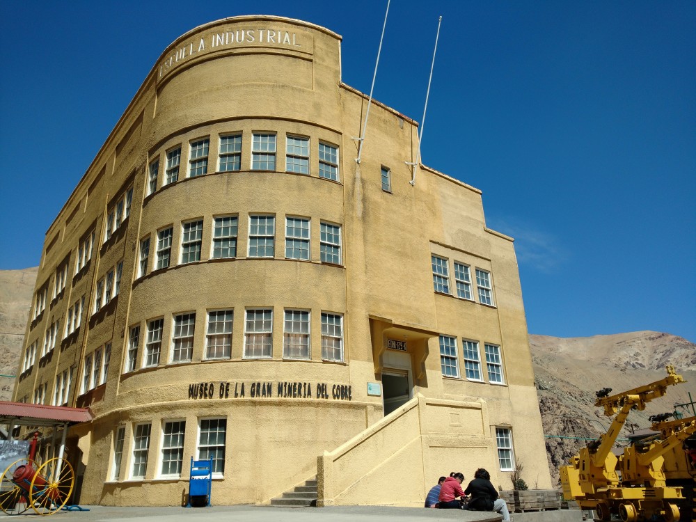 Originalmente se construyó como “Escuela Industrial”, albergando las actividades educacionales de los hijos del personal. Los pisos 1º, 2º y zócalo contaban con recintos delimitados, utilizados como salas de clases y el 3º concebido como planta libre. En la época de contratistas, el edificio se acondicionó para habitaciones de solteros, modificando los recintos (división del nivel 3º en piezas). Actualmente el inmueble ha sido restaurado, mejorando y conectando sus ambientes sin cambiar los espacios, destinados como “Museo de la Gran Minería del Cobre”.